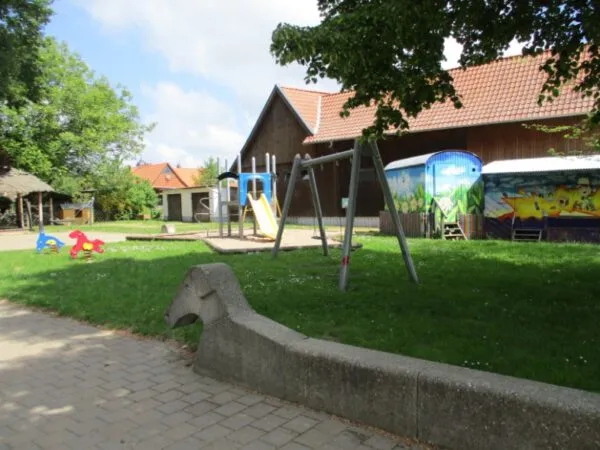 Unsere Einrichtung hat Platz für 31 Kinder vom Krippen- bis zum Vorschulalter. Wir haben drei altersgemischte Gruppen und jeder Gruppenraum hat einen eigenen Zugang zum Spielplatz. Die Kita unterhält sehr gute Beziehungen zum Freibad in Schauen. Vorschulkinder legen in einem jeden Jahr das „Seepferdchen“ ab. Weiterhin wird eine“ Erste- Hilfe-Kurs“ für Kinder angeboten. Die Einrichtung hat einen Förderverein, der regelmäßige bei zusätzlichen Aktivitäten, z.B. der Anschaffung von Hochbeeten zum selbstständigen Anbau von Gemüse, unterstützen. Grundsätzlich sind alle Aktivitäten und Angebote der Kinder eng mit den Menschen und Institutionen vor Ort verbunden und naturnah gestaltet.