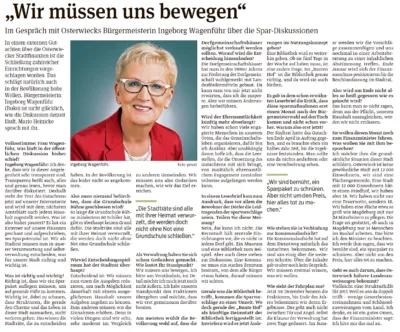 In einem externen Gutachten über die Osterwiecker Stadtfinanzen ist die Schließung zahlreicher Einrichtungen vorgeschlagen worden.
