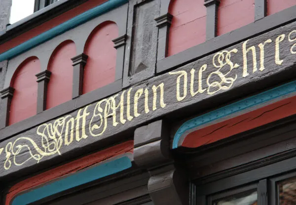 Der Rundgang führt Sie zu den wichtigsten und schönsten Beispielen aus der Reihe der über 40 Hausinschriften mit protestantischen Devisen, Zitaten aus dem Alten und Neuen Testament sowie den Psalmen.