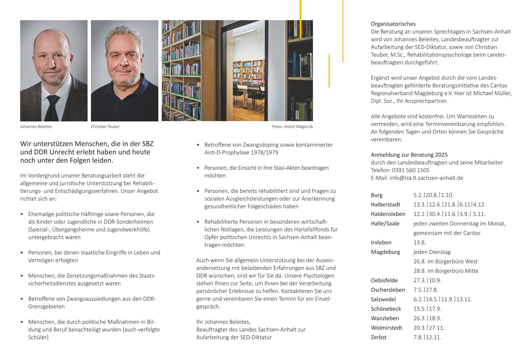 Sprechtage zur Aufarbeitung der SED-Diktatur für das Jahr 2025