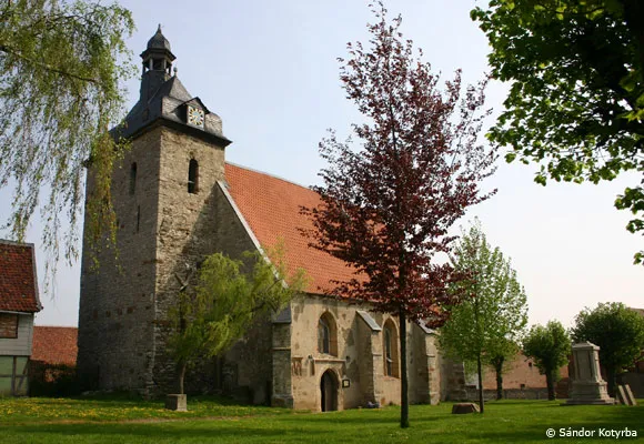 In der Mitte des Ortes steht die St. Johannis Kirche. Der über 800 Jahre alte Turm ist aus Fallsteiner Kalkstein erbaut worden. Das Kirchenschiff stammt aus dem 16. Jahrhundert. Besonderes Schmuckstück ist das an der südlichen Außenseite der Kirche befindliche Sandsteinrelief.