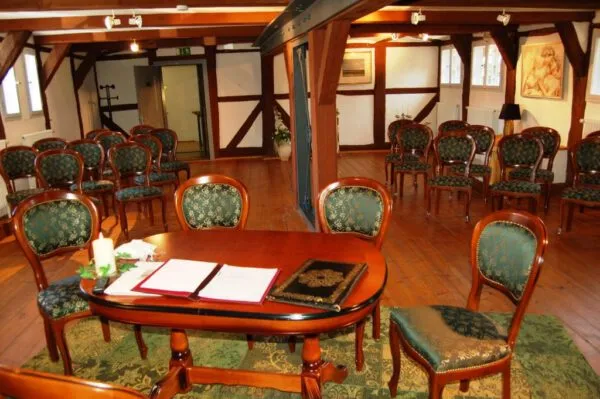 Heiratswilligen Paaren steht unser Trauzimmer auf dem historischen Ackerbürgerhof zur Verfügung. Der ideale Ort für Sie und bis zu 20 Gäste.