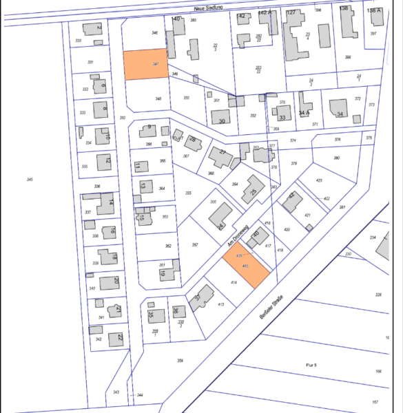 Die Wohngrundstücke sind verkehrlich und versorgungstechnisch erschlossen. Ein Hausanachluss ist erforderlich. Der Grundstückspreis beträgt 40 € / m².