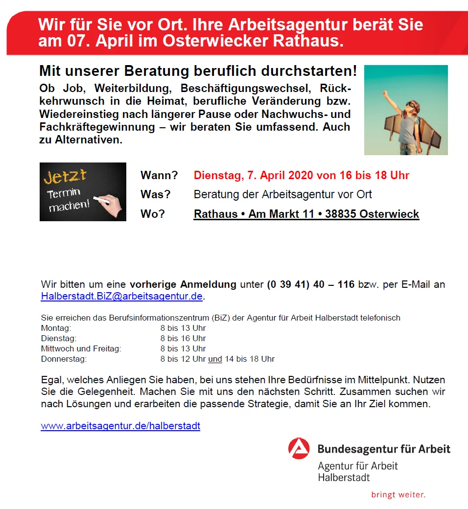 Beratung der Arbeitsagentur vor Ort (abgesagt)