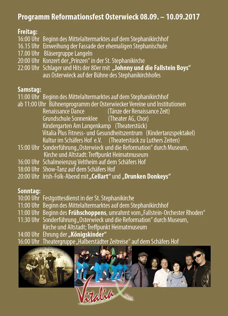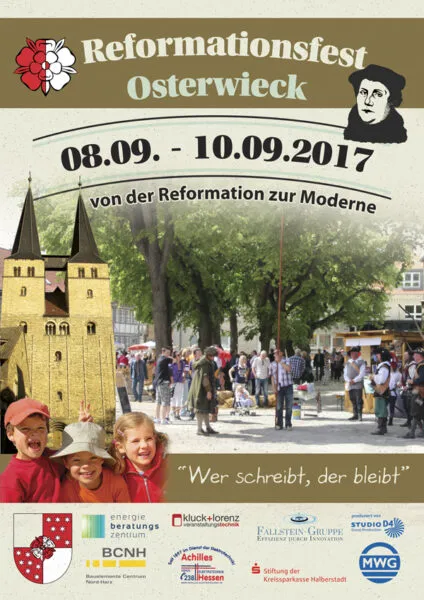 Ein buntes reformatorisches Marktreiben nebst Bühnenprogramm an den drei Veranstaltungstagen, sowie u.a. der Festgottesdienst am Sonntag erwarten die Gäste in Osterwieck.