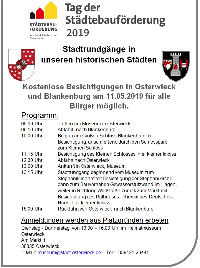 Senden Sie uns einfach eine E-Mail mit Ihren Daten an veranstaltungen@stadt-osterwieck.de